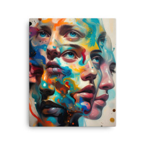 Surreal Melting Faces – Vibrant Abstract Portrait Canvas Wall Art