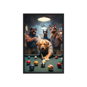 Dogs Playing Pool – Funny Dogs Billiards Framed Matte Poster
