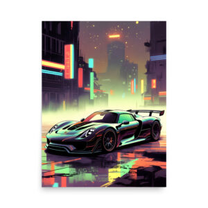 Futuristic German Supercar Neon Cyberpunk City Night Matte Poster – Art Print