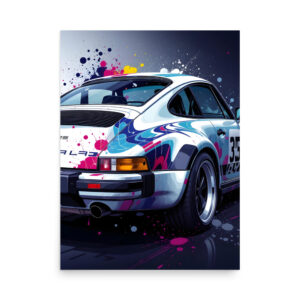 Classic Sports Car Rear View Matte Poster – Colour Splash Digital Art Print