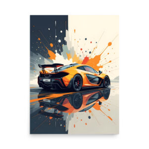 Hybrid Hyper car Rear View Matte Poster – Colour Splash Digital Art Print
