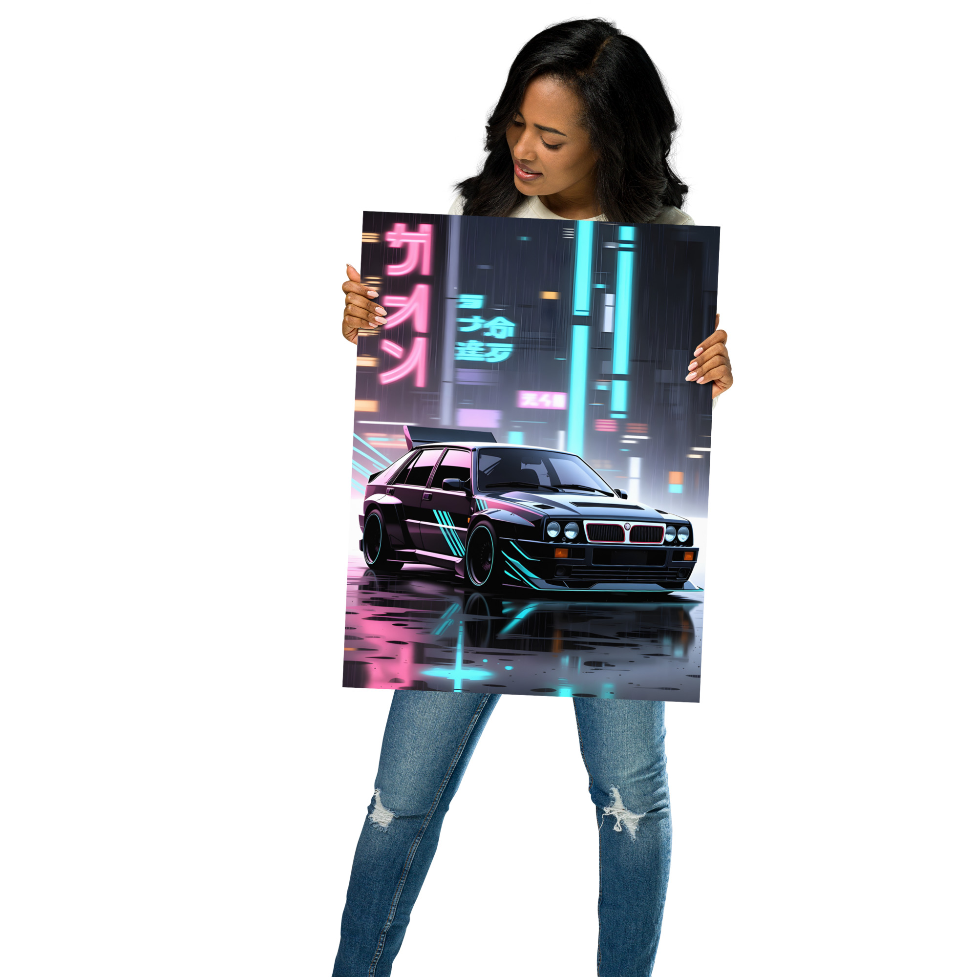 Dive deep into cyberpunk rally fever! This breath taking classic rally legend neon Tokyo night front view matte poster captures a black widebody monster prowling rain-soaked streets under towering Japanese signs glowing in electric cyan and magenta. Underbody lights pulse, headlights burn through the mist, and every reflection screams 80s Group A fury reborn in futuristic glory - perfect for gaming rooms, man caves, urban lofts, or any space that lives for high-rev underground legends.Printed on premium Enhanced Matte Paper, every neon glow, wet asphalt reflection, and flared fender is rendered with razor-sharp detail and a velvety, glare-free finish that makes the scene come alive in any light.