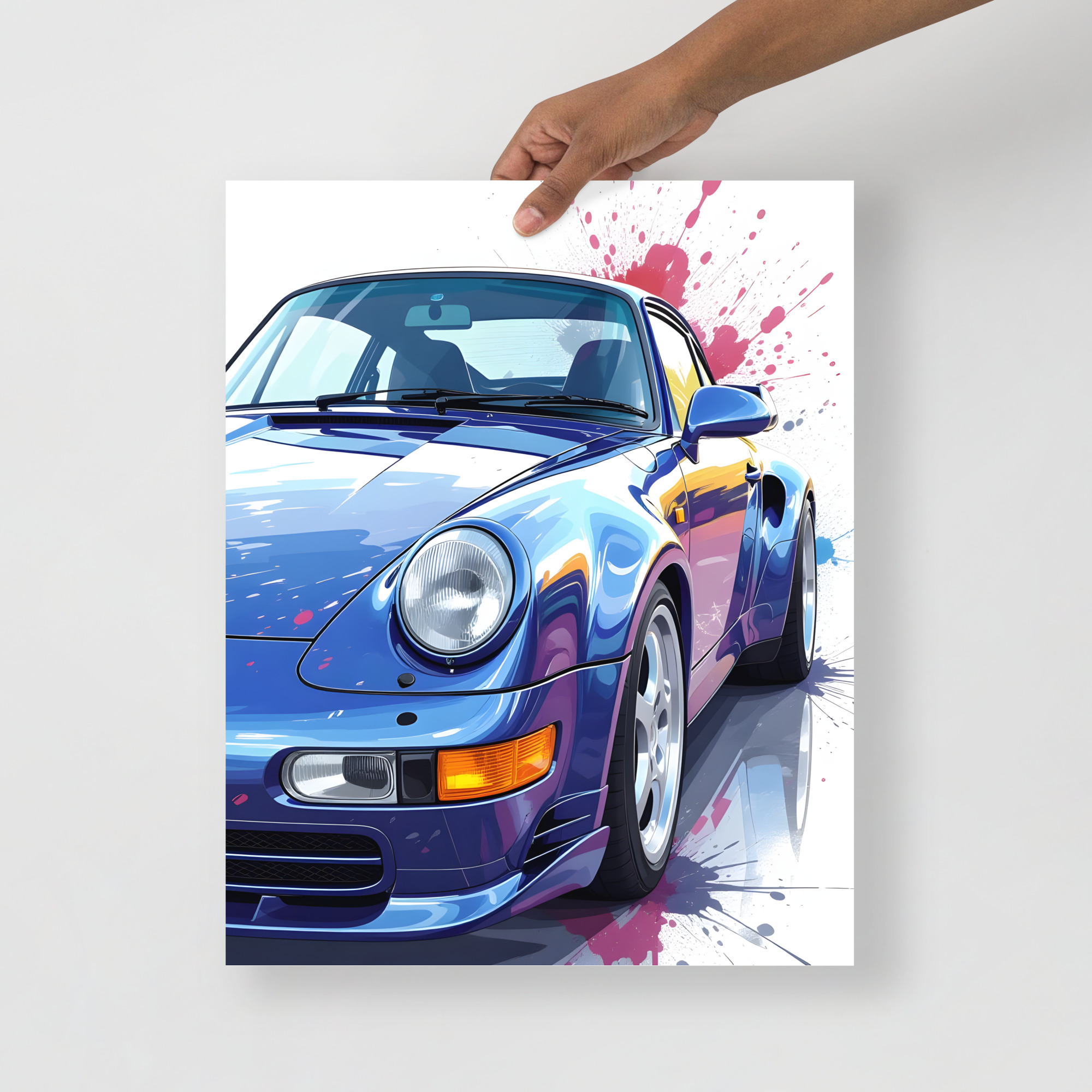 Museum-quality posters made on thick matte paper. Add a wonderful accent to your room and office with these posters that are sure to brighten any environment. through the streets with this adrenaline-fueled classic turbo sports car side view matte poster! The Guards Red icon slashes forward with flared fenders, rear wing spoiler, and motion-blurred speed lines, all supercharged by a fiery rainbow paint-splash explosion in yellow, orange, cyan, and purple that captures pure retro turbo madness. This original digital artwork fuses engineering legend with high-octane street-art energy-perfect for retro garages, gaming setups, or bold modern man caves. Printed on premium Enhanced Matte Paper, it delivers vivid colour punch and a smooth, non-glare finish that keeps every curve razor-sharp under any light. Choose your velocity: 11"x14", 8"x10", 16"x20", 12"x18", 18"x24", A2 (16.5"x23.3"). Frame it vintage, float-mount it sleek, or hang it raw-your road, your rules.Each order is freshly printed to your specifications with eco-conscious precision for flawless quality and zero waste. Worldwide shipping in 2-5 days drops 300+ hp nostalgia at your door. The ultimate gift for turbo sports car fans, classic performance collectors, or anyone who lives for the boost.