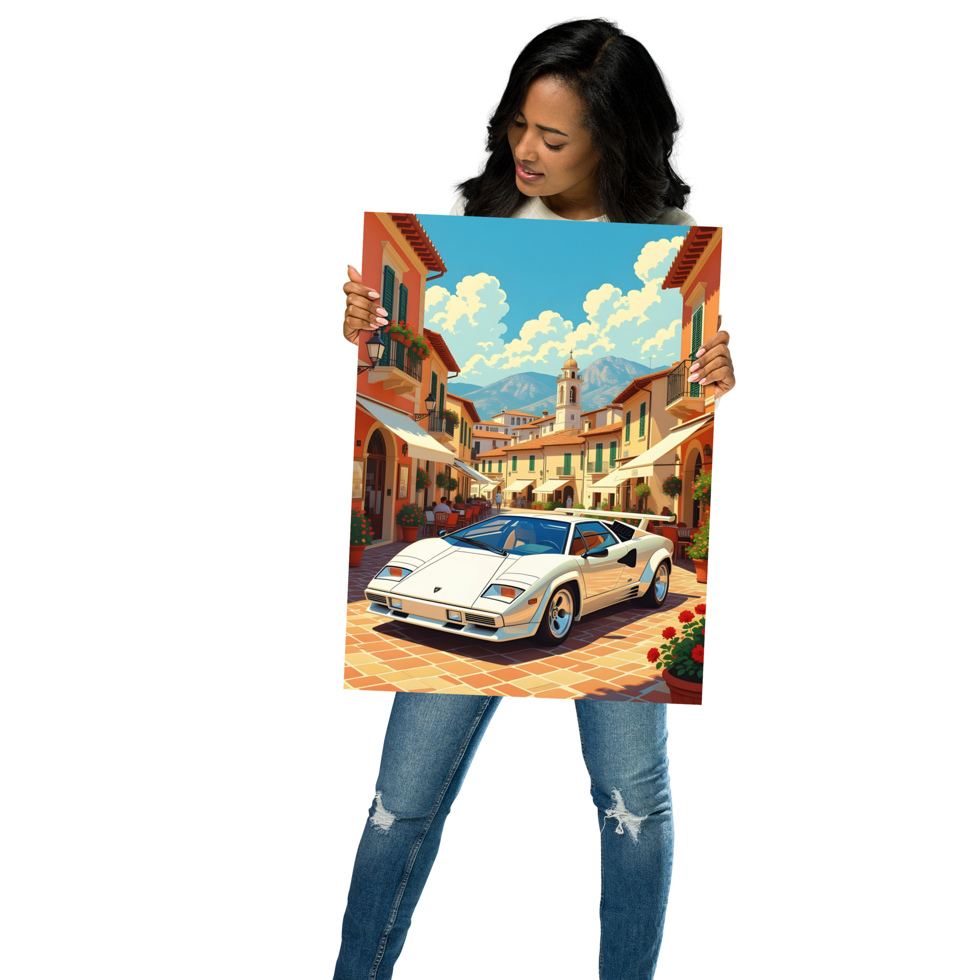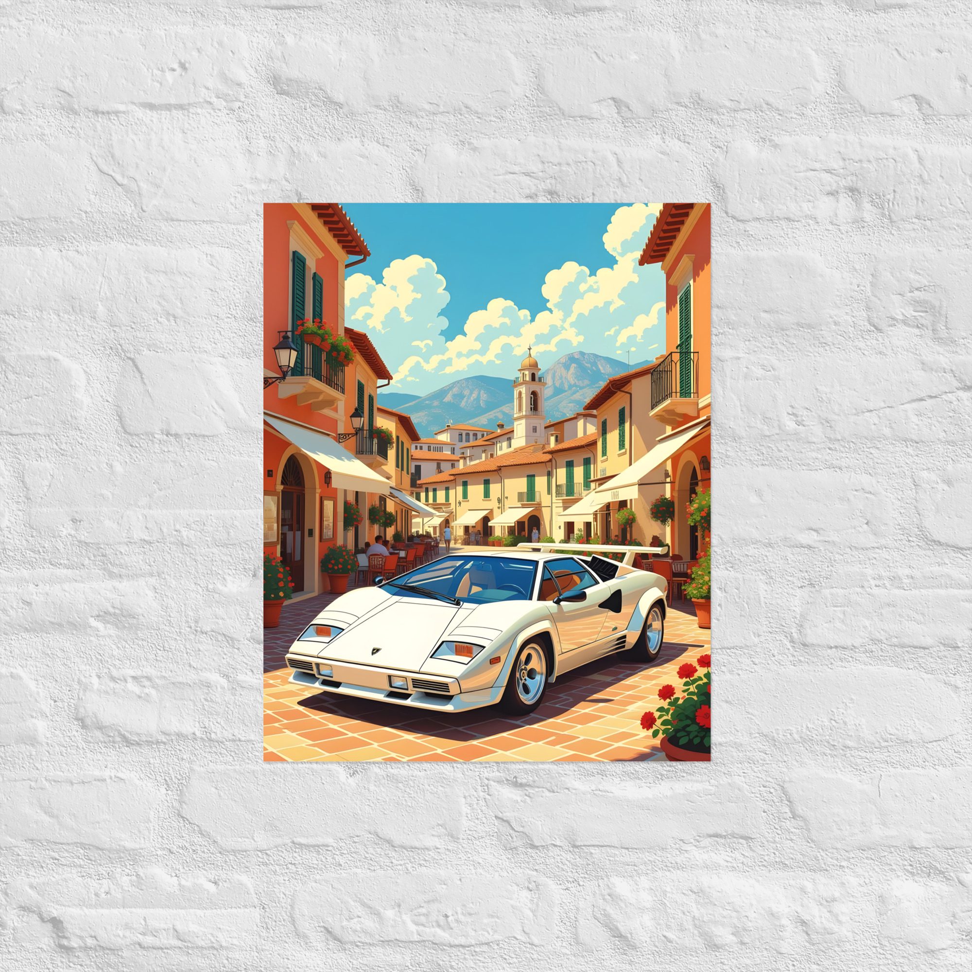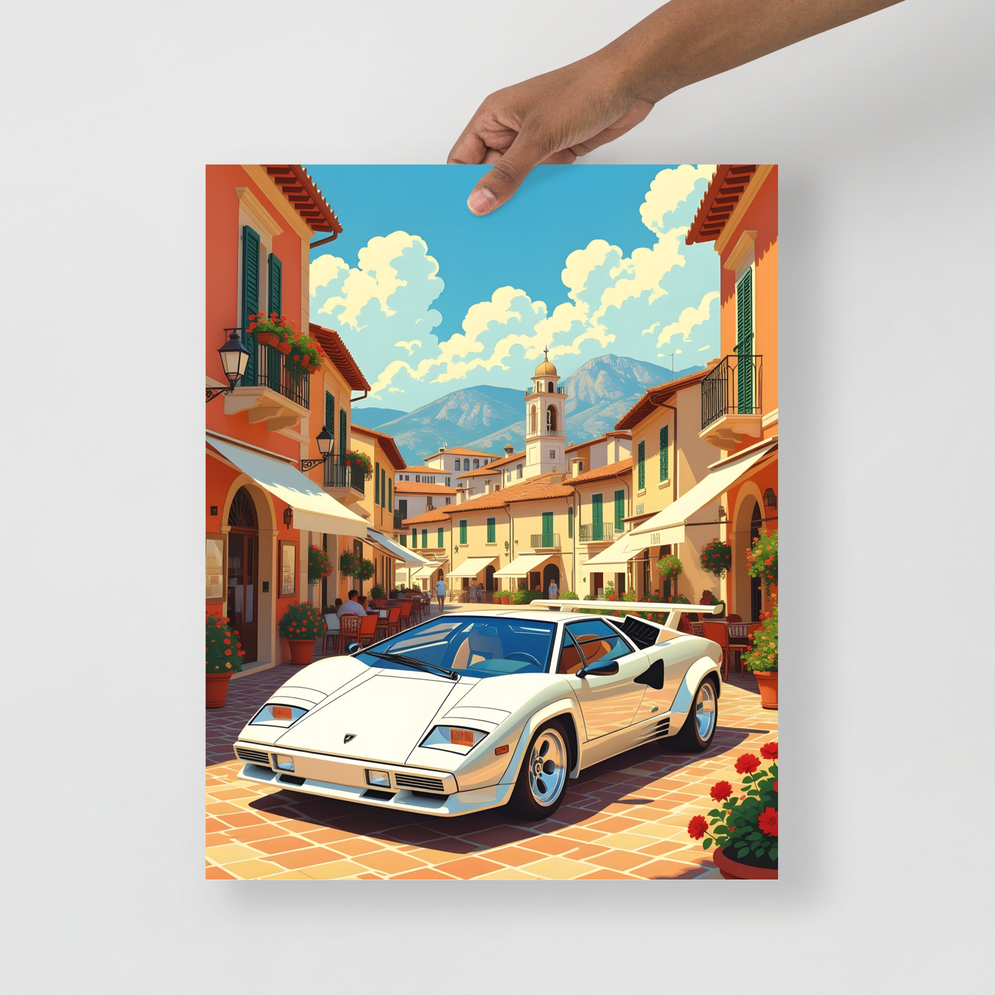 Transport yourself to la dolce vita with this enchanting classic wedge supercar Tuscan village front view matte poster! The pristine white legend sits majestically on sun-drenched terracotta cobblestones, framed by pastel facades, blooming geranium balconies, and a distant bell tower beneath snow-capped mountains. This original artwork captures angular performance perfectly at home in a dreamy Mediterranean piazza where time stands still and V12 dreams come true. Exclusive to the Cars Scenic collection-where supercar legends live in the world's most picturesque corners. Printed on premium Enhanced Matte Paper, it delivers warm Mediterranean light, crisp architectural detail, and flawless white-body reflections with a silky, glare-free finish that makes the scene glow like Italian sunshine. Choose your piazza size: 11"×14", 8"×10", 16"×20", 12"×18", 18"×24", A2 (16.5"×23.3"). Frame it espresso wood, float-mount it clean, or hang it raw-your village, your rules.Each order is produced fresh with eco-conscious precision for flawless quality and zero waste. Worldwide shipping in 2-5 days drops romance at your door. The ultimate gift for supercar romantics, Italian car lovers, or anyone who believes the best parking spot is in a postcard.