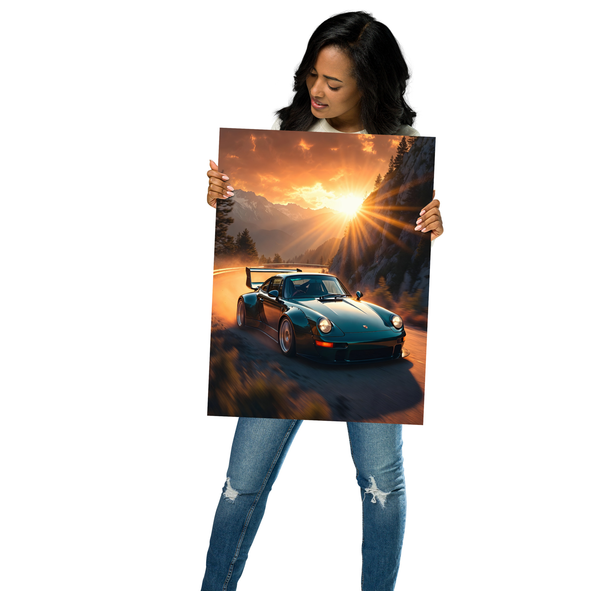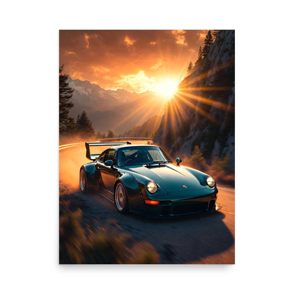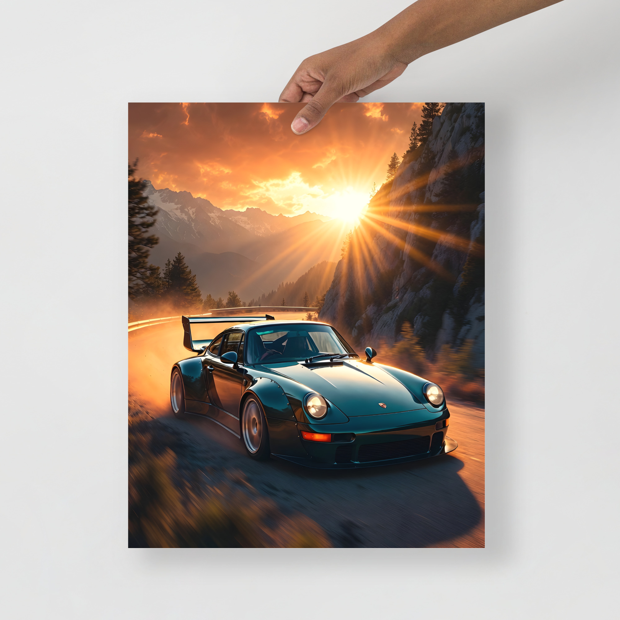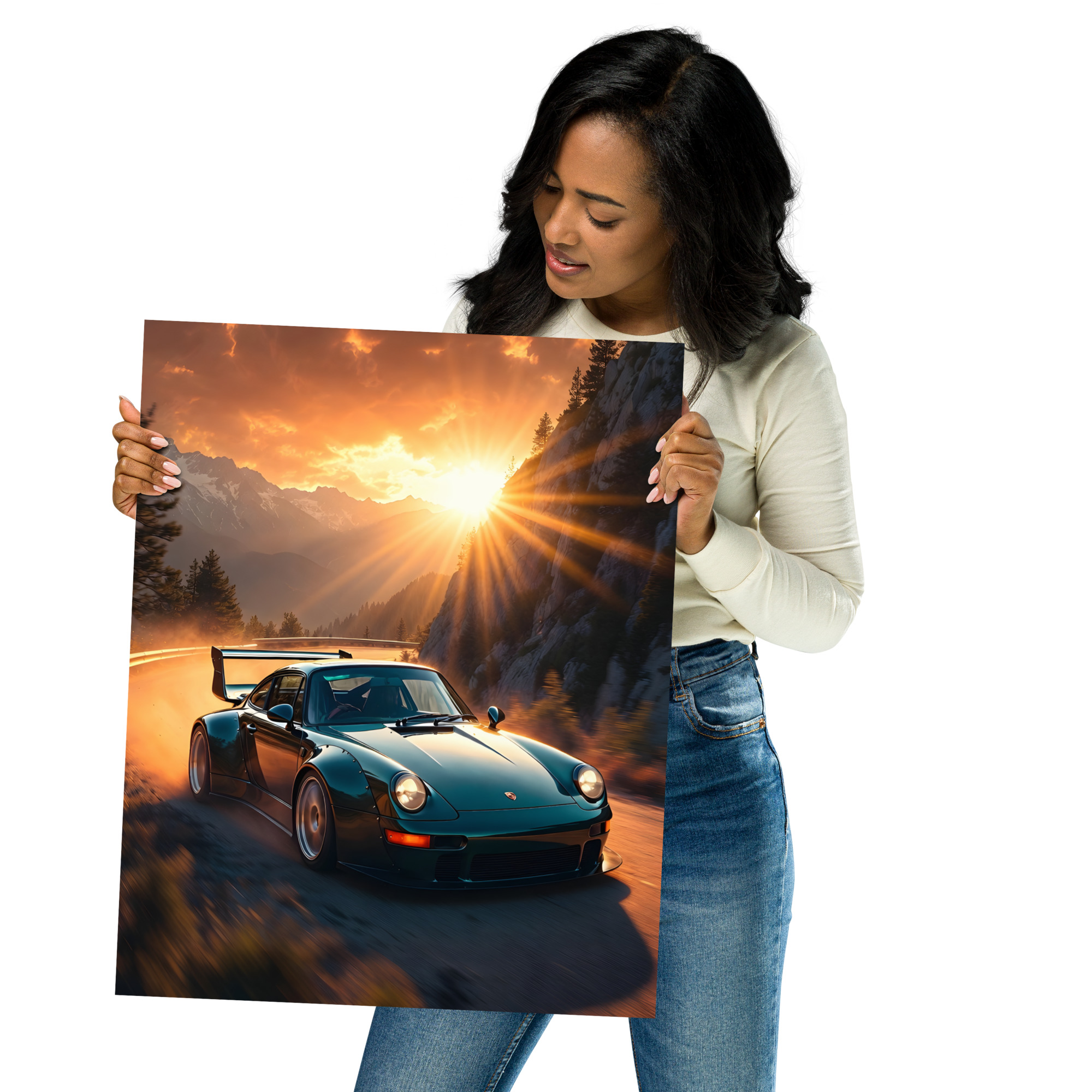 Chase the sun through the Alps in pure style! This breath taking classic widebody coupe alpine sunset front view matte poster captures a deep emerald legend with flared arches and massive rear wing charging up a mountain road as the sun explodes in golden rays behind snow-capped peaks and pine-covered cliffs. Pure 80s-90s performance icon meets cinematic alpine golden-hour magic - perfect for garages, living rooms, cabins, or any wall that lives for epic drives and dramatic sunsets.Printed on premium Enhanced Matte Paper, every sunbeam, dust trail, and metallic reflection is rendered with razor-sharp clarity and a velvety, glare-free finish that makes the scene glow in any light.