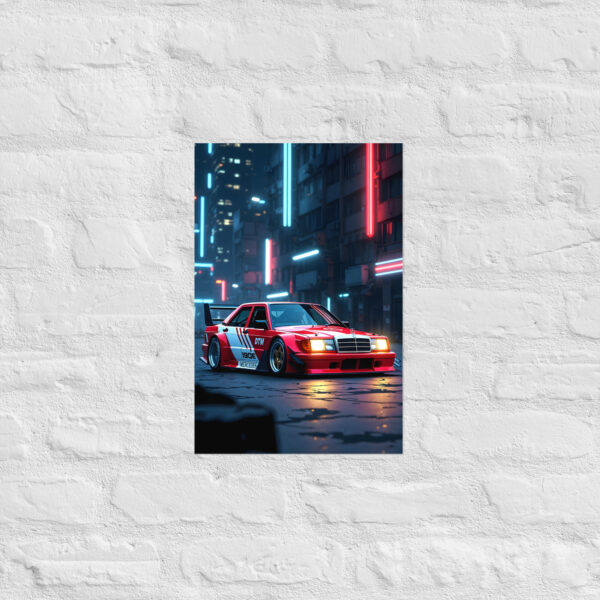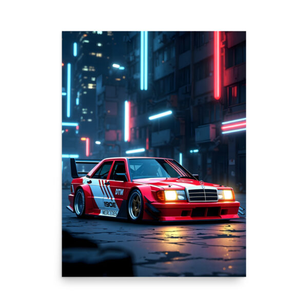 Rule the cyberpunk night with this jaw-dropping classic widebody touring racer neon alley night matte poster! A blazing red DTM-style legend sits low and menacing under vertical cyan and red neon tubes, headlights glowing, massive wing cutting the darkness, and wet concrete reflecting every electric hue. Pure 80s-90s touring-car aggression reborn in futuristic street glory - perfect for gaming setups, man caves, urban lofts, or any space that lives for underground cyberpunk vibes.Printed on premium Enhanced Matte Paper, every neon reflection, chrome detail, and puddle glow is rendered with razor-sharp clarity and a velvety, glare-free finish that makes the scene come alive in any light.