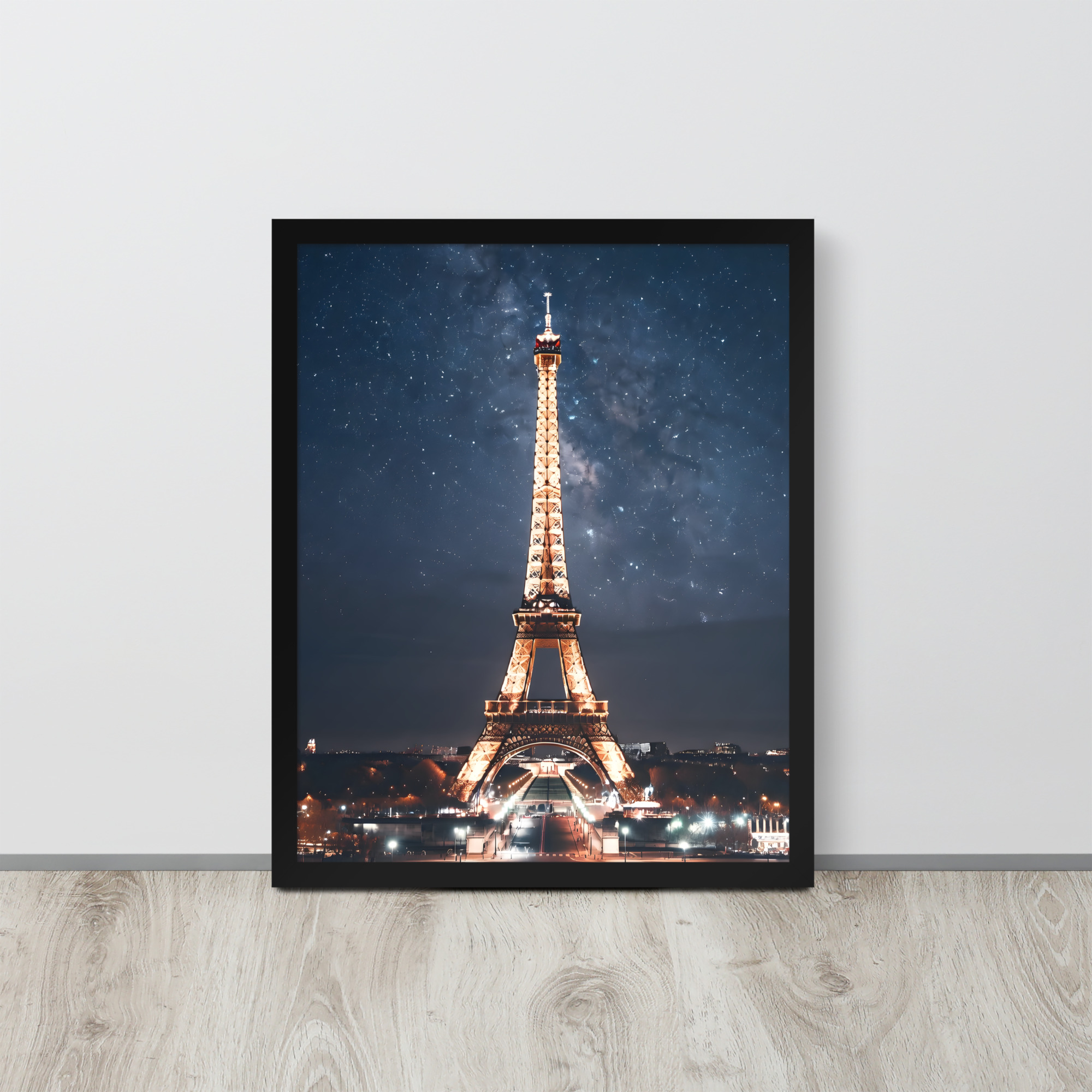 Fall in love with Paris all over again with this mesmerising Eiffel Tower & Milky Way framed matte poster. The glowing Eiffel Tower stands majestically under a breath-taking, star-filled Milky Way galaxy, blending the romance of the City of Light with the wonder of the cosmos. Perfect for travel enthusiasts, astronomy lovers, bedrooms, living rooms, or romantic spaces. Printed on premium enhanced matte paper with deep, vibrant colours and professionally framed in your choice of black, white, or natural oak wood frame. Available in 8×10, 11×14, 16×20, and 20×30 inches.