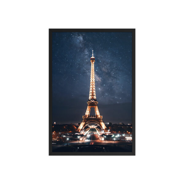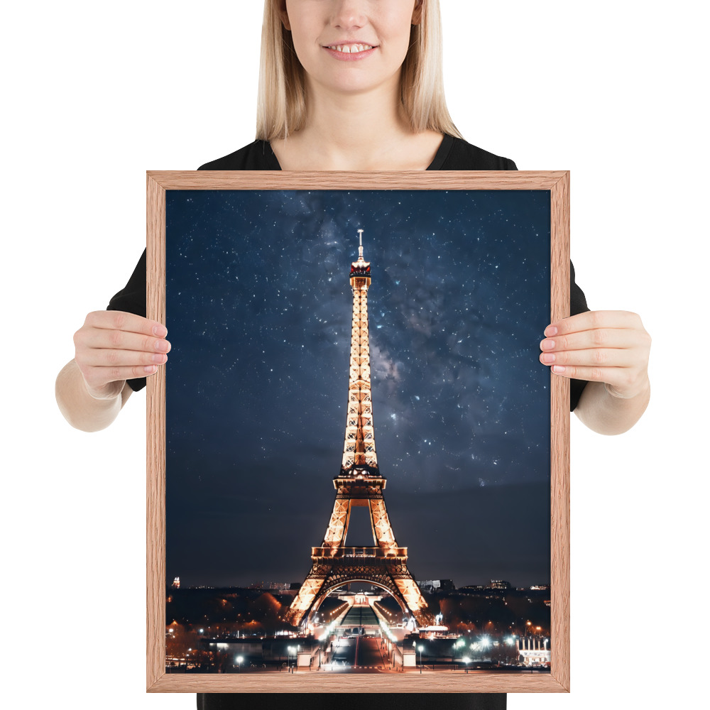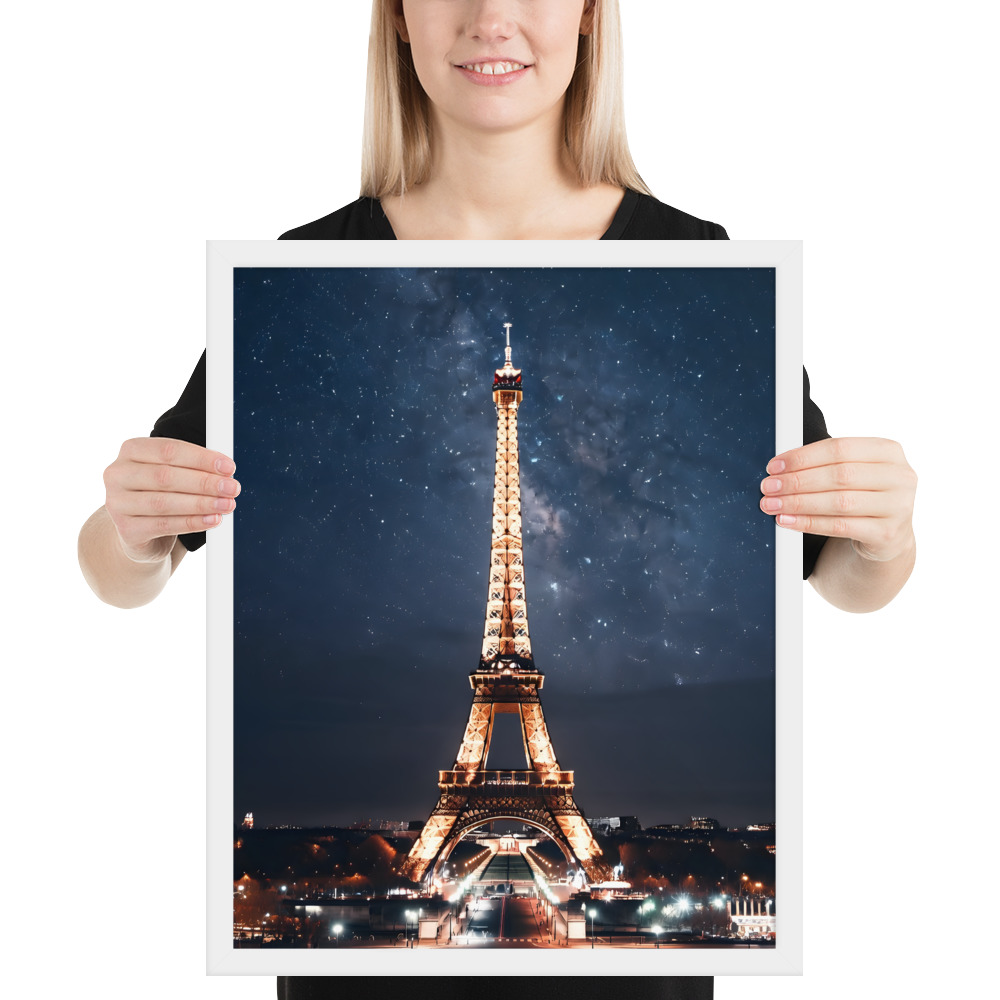 Eiffel Tower & Milky Way – Paris Night Sky Galaxy Framed Matte Poster