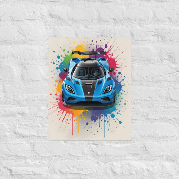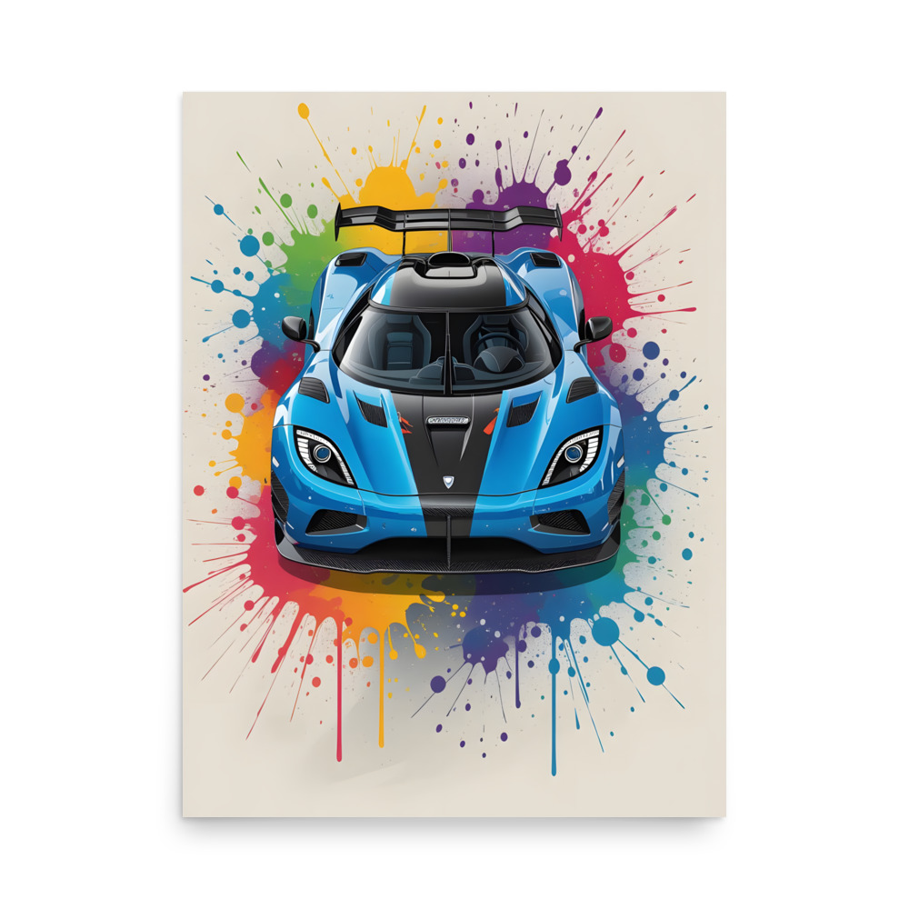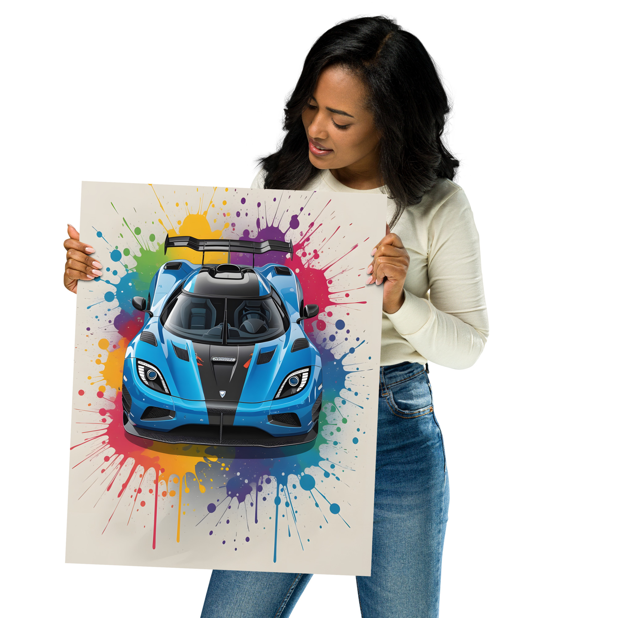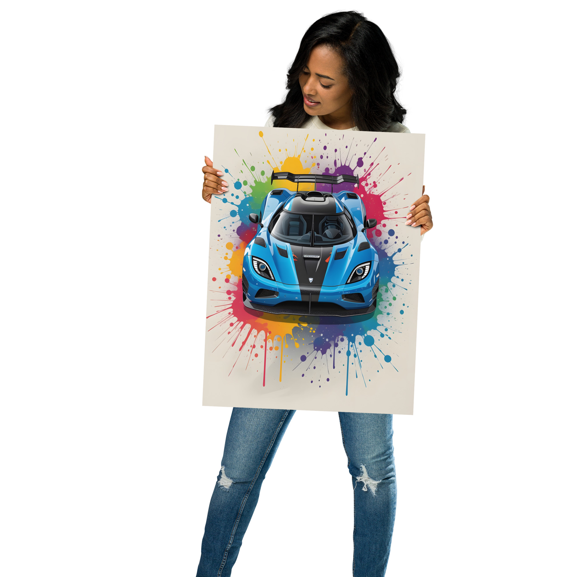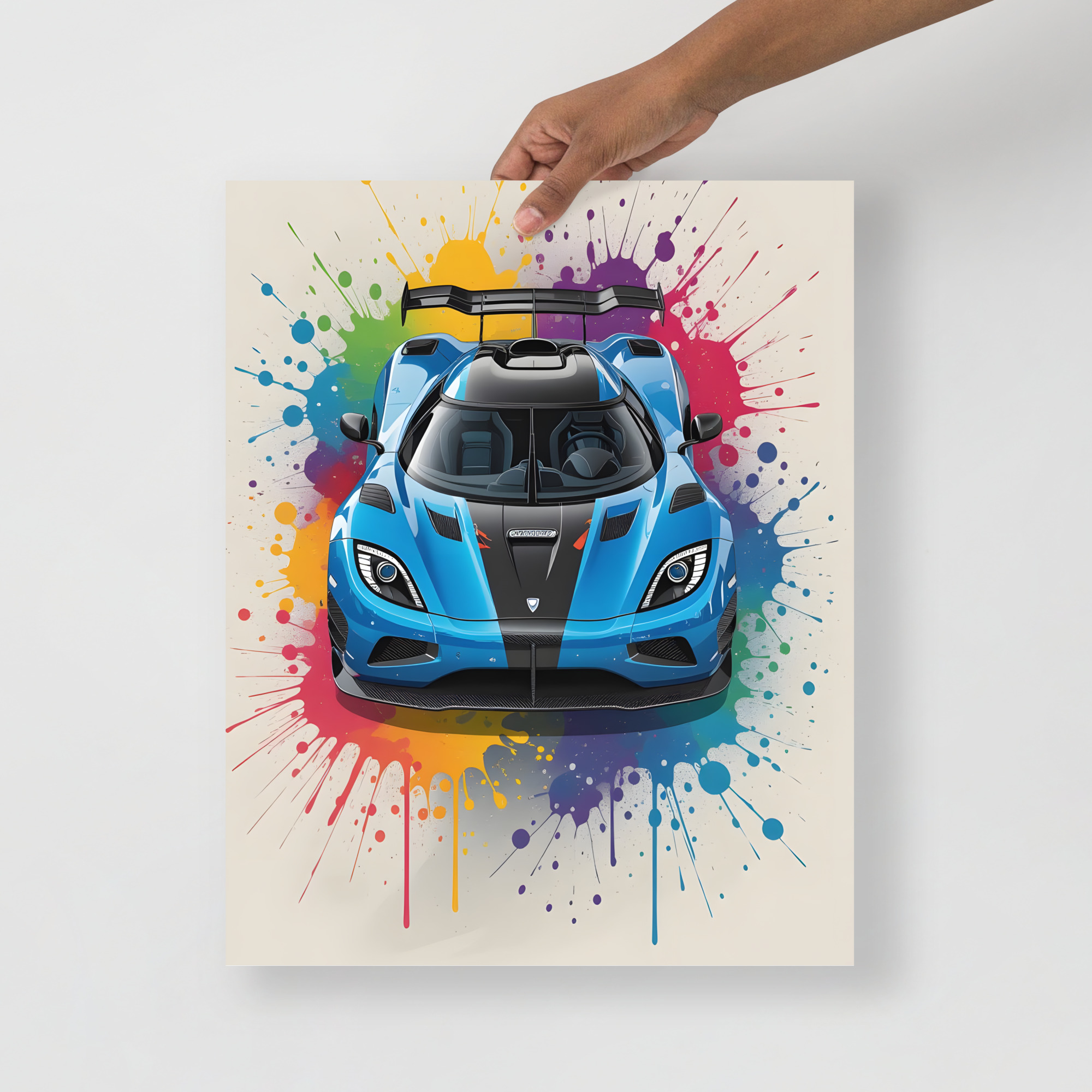 Unleash Swedish mega-GT supremacy with this mind-bending extreme hybrid hypercar front view matte poster! The electric-blue machine dominates with its upward-swinging doors, glowing LED eyes, and carbon-fibre aggression, all detonated by a psychedelic rainbow paint-splash supernova in red, yellow, purple, cyan, and pink that screams hybrid power. This original artwork fuses Scandinavian engineering genius with explosive street-art energy-perfect for luxury garages, executive suites, or futuristic lofts. Printed on premium Enhanced Matte Paper, it delivers searing colour vibrancy and a velvety, anti-glare finish that keeps every detail razor-sharp under any light. Choose your conquest size: 11""×14"", 8"×10", 16"×20", 12"×18", 18"×24", A2 (16.5"×23.3"). Frame it carbon, float-mount it clean, or hang it raw-your empire, your rules.