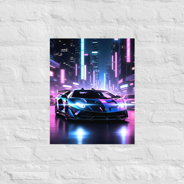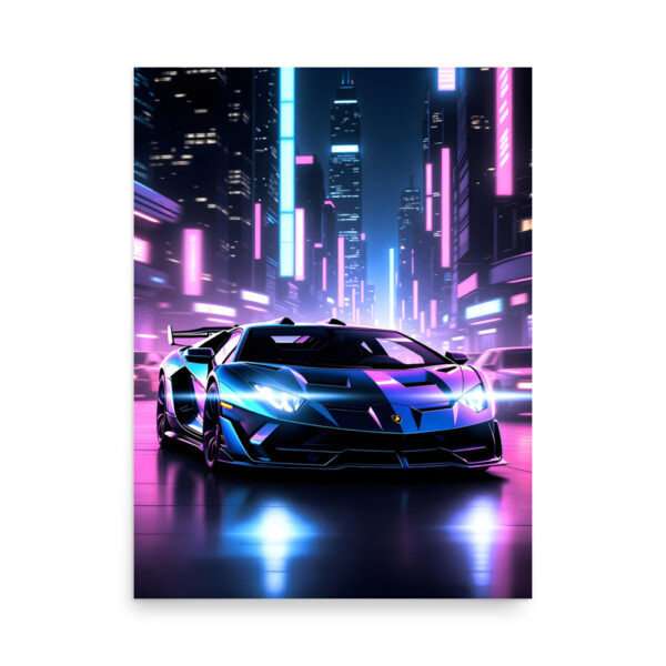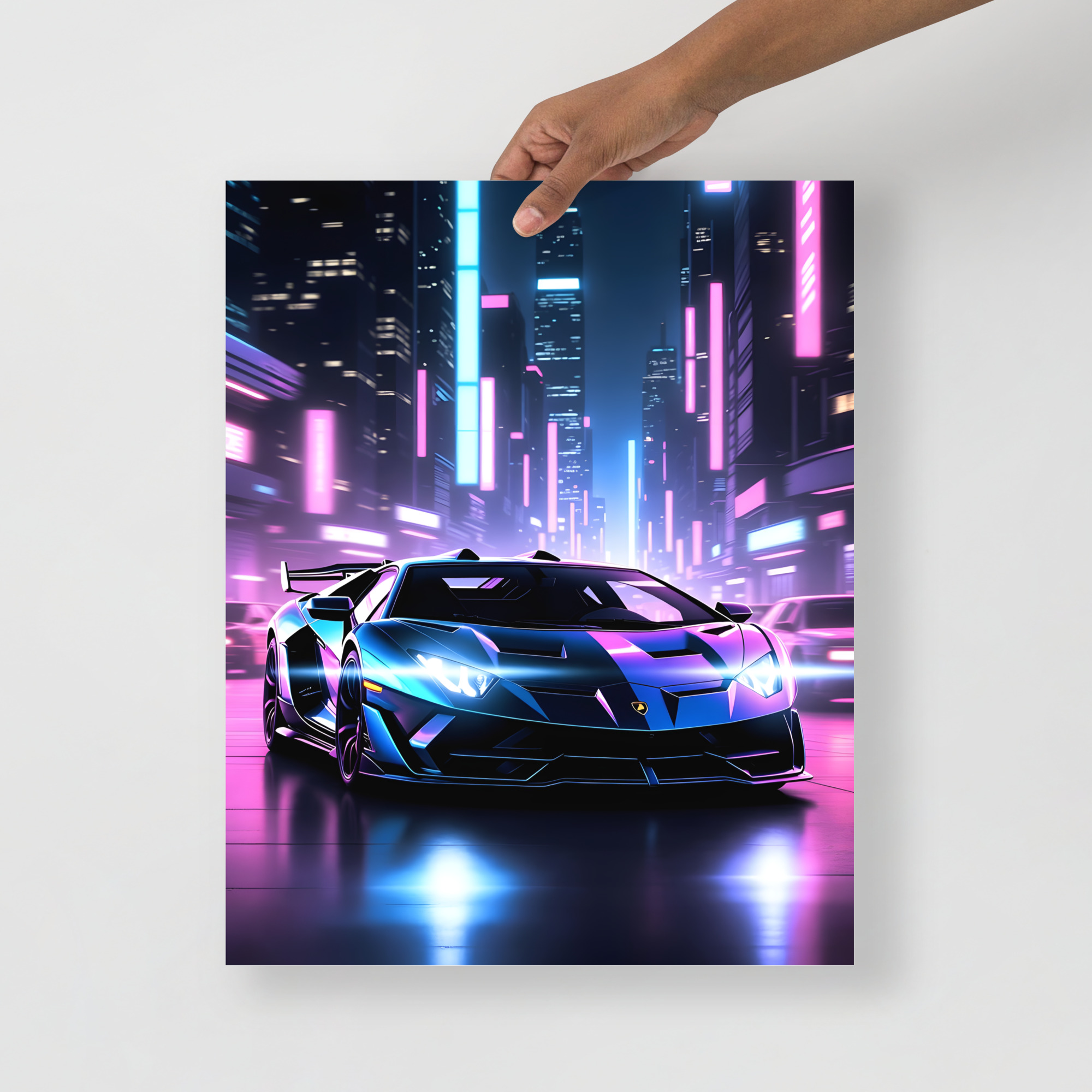 Own the night in cyberpunk glory! This jaw-dropping extreme wedge supercar neon city night front view matte poster captures a black-and-purple angular beast prowling a futuristic metropolis, scissor doors up, headlights blazing, and towering skyscrapers pulsing with electric cyan and magenta neon. Pure high-performance aggression meets next-gen street-art energy - perfect for gaming rooms, luxury lofts, man caves, or any wall that demands speed and futuristic vibes.Printed on premium Enhanced Matte Paper, every neon reflection, sharp edge, and wet asphalt glow is rendered with razor-sharp detail and a velvety, glare-free finish that makes the scene come alive in any light.