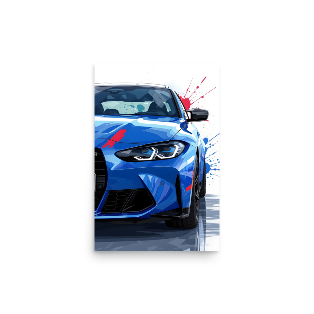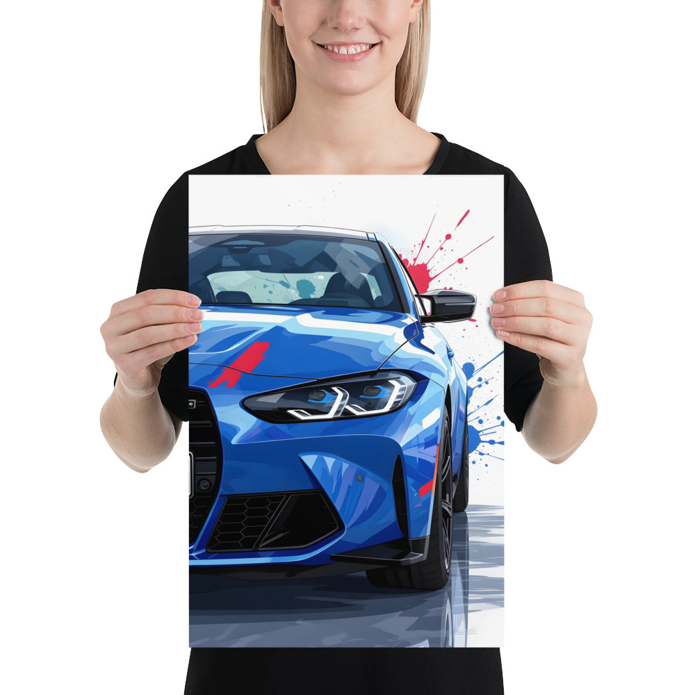 Unleash pure performance on your walls with this striking modern performance sedan front view matte poster! The aggressive blue machine charges forward with razor-sharp LED headlights, massive signature grille, and aerodynamic vents, accented by explosive red and blue paint splashes that scream power and passion. This original artwork captures the essence of ultimate driving in a bold, modern street-art style-perfect for enthusiasts who live for the thrill of the drive. Printed on premium Enhanced Matte Paper, it offers deep colour saturation and a velvety, glare-free finish that makes every detail pop in any lighting. Elevate your garage, office, bedroom, or showroom with a piece that blends automotive precision with artistic flair.Choose from multiple sizes to suit your space: 11"×14", 8"×10", 16"×20", 12"×18", 18"×24", A2 (16.5"×23.3").