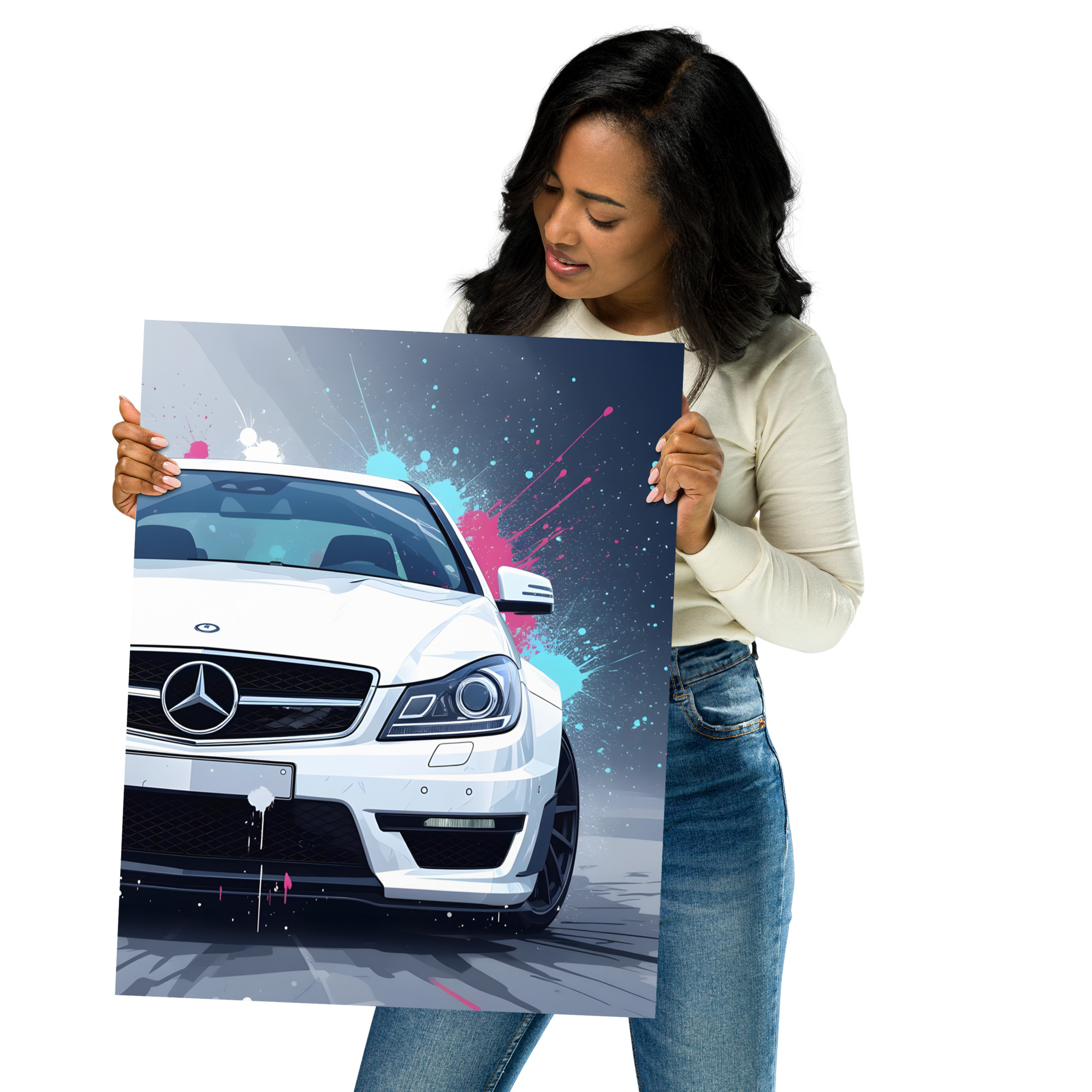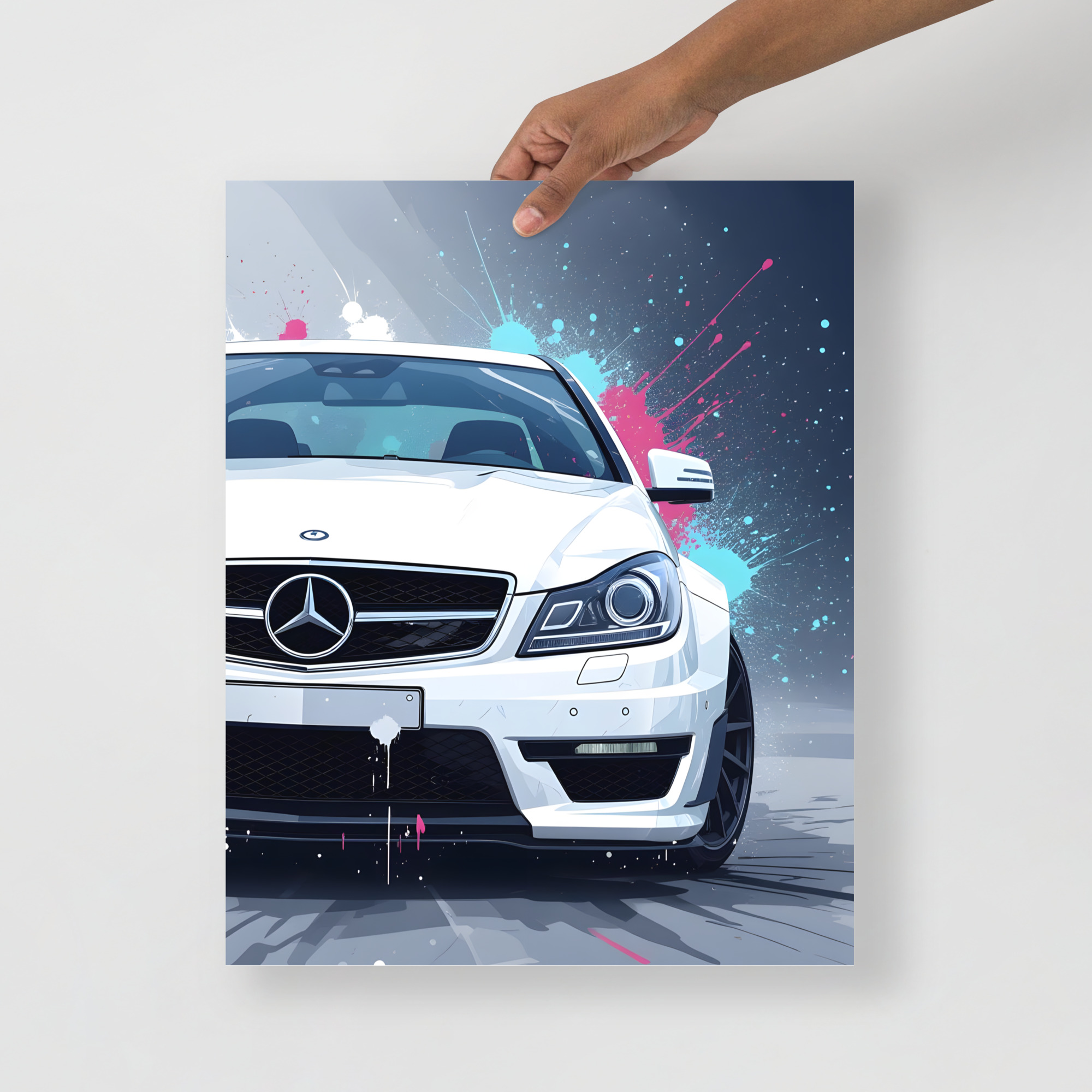 "Turn up the heat with this sleek widebody muscle car front view matte poster! The pristine white beast stares down with its diamond-block grille, fierce LED headlights, and aggressive stance, all electrified by vibrant cyan and magenta paint splashes that drip and explode like urban graffiti on asphalt. This original digital artwork blends performance precision with raw street-art attitude-perfect for modern lofts, car workshops, or high-energy home offices. Printed on premium Enhanced Matte Paper, it delivers bold, fade-resistant colours and a smooth, non-reflective finish that keeps every detail crisp in any lighting. Choose your ideal size: 11""×14"", 8""×10"", 16""×20"", 12""×18"", 18""×24"", A2 (16.5""×23.3""). Frame it clean, float-mount it minimalist, or hang it raw-your space, your vibe.Each order is made fresh with sustainable production for top-tier quality and zero waste. Fast worldwide shipping in 2-5 days brings V8 aggression to your door. The perfect gift for performance fans, muscle car loyalists, or anyone who thrives on power and style.